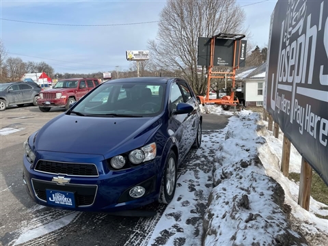 Introducing the 2013 Chevrolet Sonic LT at Joseph's Buy Here Pay Here LLC! This vibrant blue hatchback boasts a 1.8L 4-cylinder engine paired with a 6-speed automatic transmission, delivering a smooth and efficient ride. Safety is a priority with features like active belts, anti-lock brakes, automatic passenger sensor for the airbag, and dual airbags at the front, head, and side, along with rear dual side airbags. Comfort isn't compromised, thanks to the air conditioning, power steering, and power brakes. Enjoy the convenience of keyless entry and alarm, power windows, and a tilt steering wheel. Stay entertained on the go with the AM/FM CD/MP3 stereo. Daytime running lights ensure better visibility. Ready for a test drive? Call us at 740-452-5599 to schedule your visit!